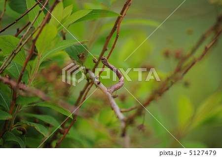 生き物 昆虫 ヒメツバメアオシャク、五月の幼虫。成虫は青緑の美しい葉