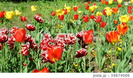 色とりどりに咲き誇る赤白黄色