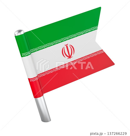 Flag of Iran isolated on white background with copy space below. 3D rendering