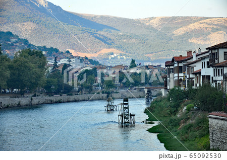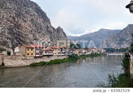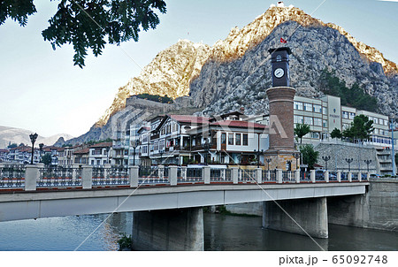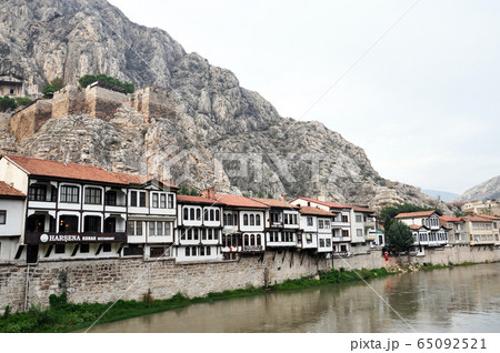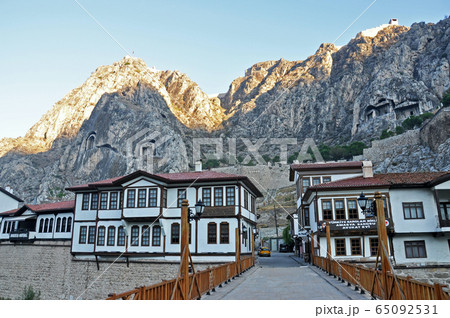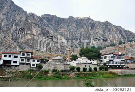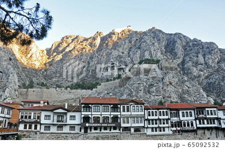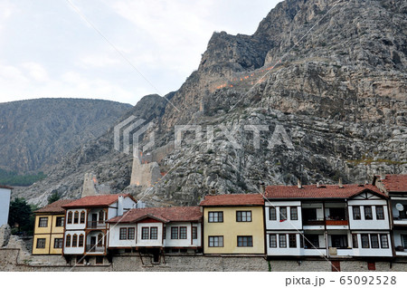 トルコ アナトリア地方 古都アマスヤの家並み、ポントス岩窟王墓と城塞