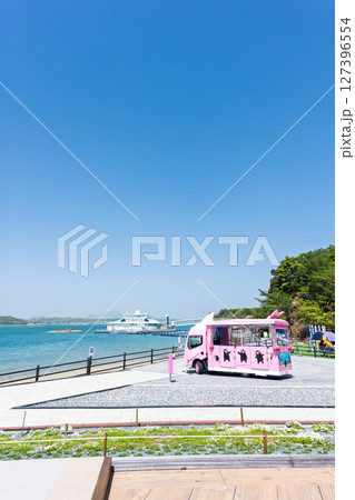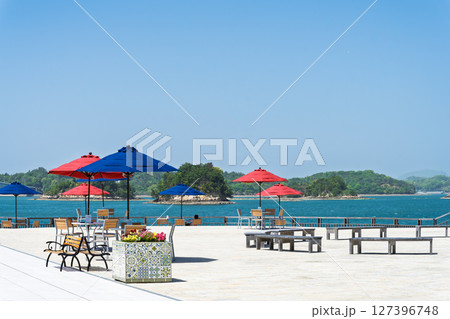 青空を背景に映える広場風景「天草パールガーデン& 海中水族館シードーナツ」