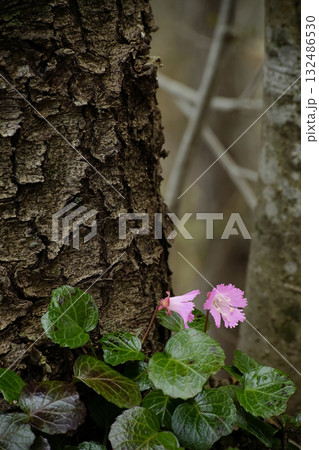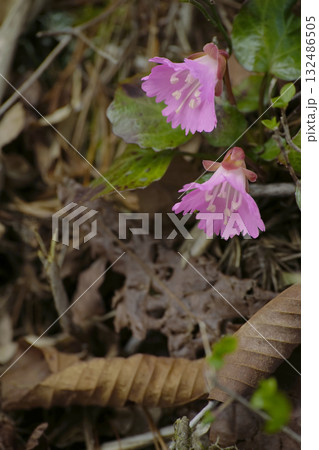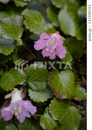 東京都奥多摩に咲く薄ピンク色のイワウチワの花