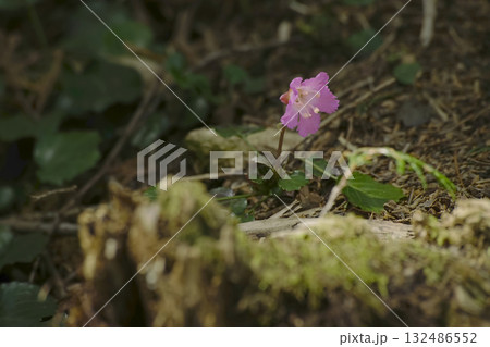 埼玉県奥武蔵にひっそりと咲く薄ピンク色のイワウチワの花