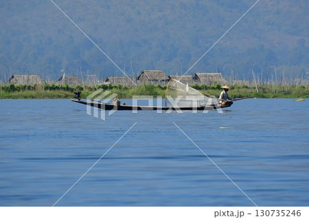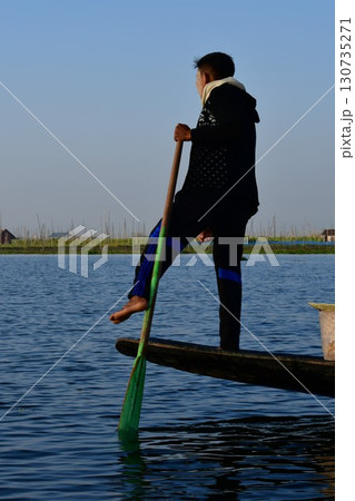 ミャンマー、インレー湖、インター族、片足漕ぎ、小舟