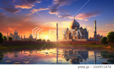 Taj Mahal in Agra, Uttar Pradesh, India. Seven world wonders. Fabulous Taj mahal travel concept. indian islamic heritage at sunny day