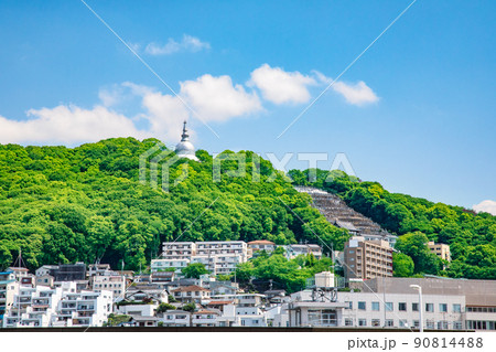 仏舎利塔(平和の塔)が見える風景です。すべてを超越し世界平和を希求するイメージにどうぞ。広島県