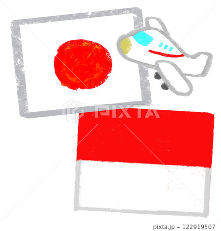 国旗のイラスト クレヨンタッチ 日本とインドネシア