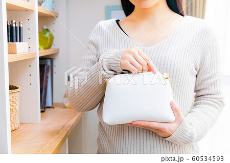 ポーチを開ける、閉める女性 コピースペース 4:3