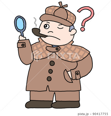 虫眼鏡をもってパイプをくわえた探偵