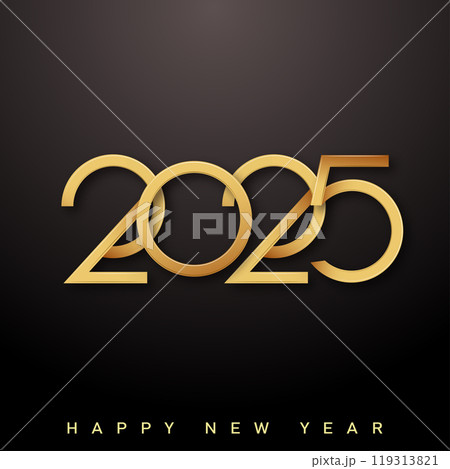 Minimalistic Golden 2025 Happy New Year Modern Design Greeting. Vector
