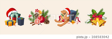 Christmas and Winter Holiday Bright Object and Symbol Vector Set