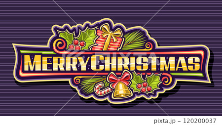 Green decorative Merry Christmas vintage greeting card with natural spruce vector illustration
