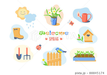 easter holiday set flat icons, egg nest ribbon bunny family flower lily butterfly spring treat carrot dove peace