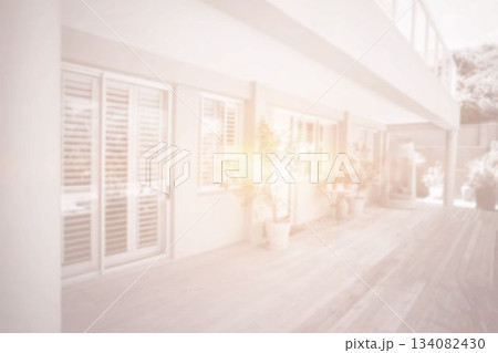 Front of modern house with bright light