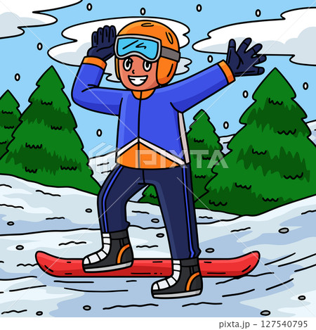 Snowboarding Boy Wearing Goggles Colored Cartoon