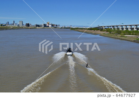 水上スポーツ、ウェイクボード体験 荒川にて(足立区西新井橋付近)
