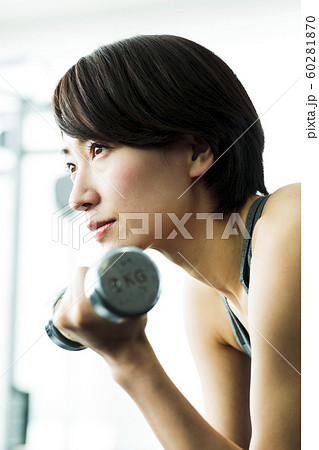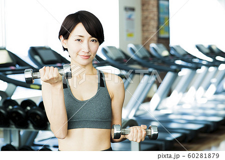 ジム 筋トレ トレーニング ダイエット ダンベル 若い女性