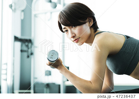 フィットネスジム スポーツジム 女性 鉄アレイ ウエイトトレーニング