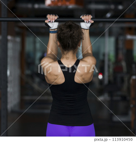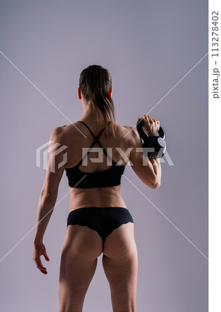 Portrait of young muscular woman in gym. Routine workout for physical and mental health.