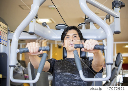 Strength training by exercise with equipment and machine. Cardiovascular health concept