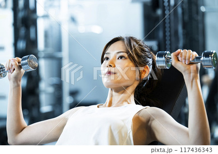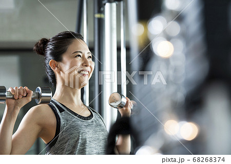 スポーツジム 女性 ダンベル 筋トレ