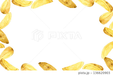 ナチュラルカットのフライドポテトのフレーム 料理・食べ物の手描き水彩イラスト背景素材