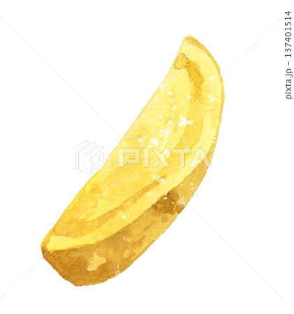 ナチュラルカットの皮付きフライドポテト 料理・食べ物の手描き水彩イラスト素材