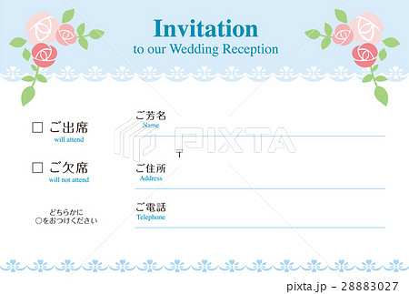 結婚式の出欠席届け(水色)