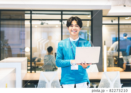 ノートパソコンを持ったカメラ目線の20代の男性 撮影協力:WEEK芝大門(サンフロンティア不動産)