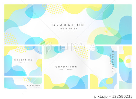 グラデーションと曲線のテンプレートセット_水色と黄色