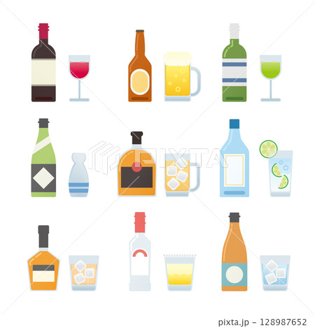 Alcohol and liquor icon set. It included icons such as whiskey, wine, Champagne, Soju, vodka, beer, and more.