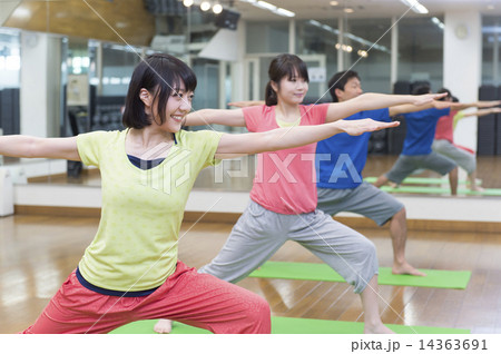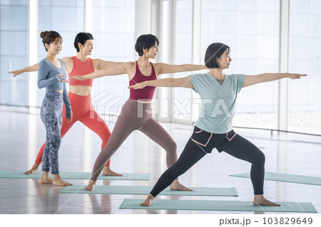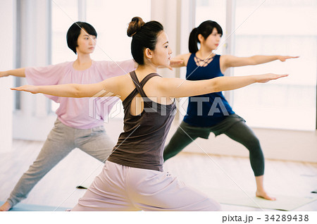 ヨガをする若い女性 日本人 英雄のポーズ ホットヨガ