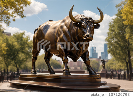 猛々しい雄牛の銅像 AI画像
