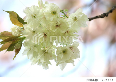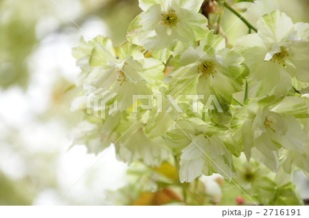 薄緑色の桜 うこんの桜 鬱金 鬱金桜 桜 満開の鬱金
