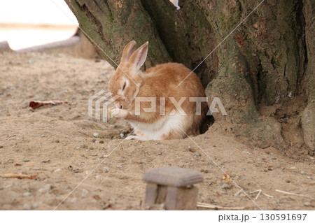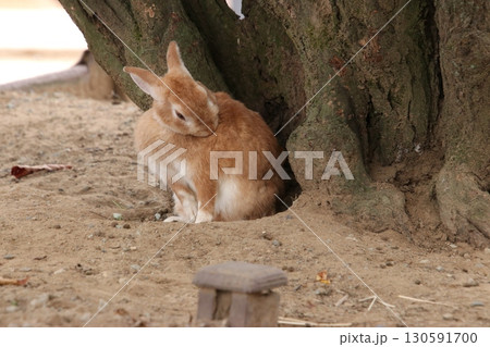 毛繕いをしているうさぎ(月うさぎの里 ※石川県 加賀市)