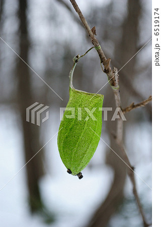 風景自然動物昆虫写真 ウスタビガの繭 きれいなモスグリーンのウスタビガの繭