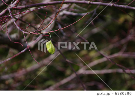 枝にぶら下がる黄緑色の繭 【相模原市津久井 3月】