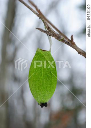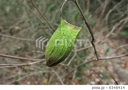 風景自然動物昆虫写真 ウスタビガの繭 きれいなモスグリーンのウスタビガの繭