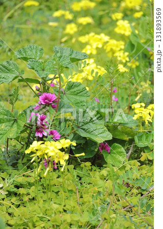 コモンマロウ ゼニアオイとカタバミ タテ位置