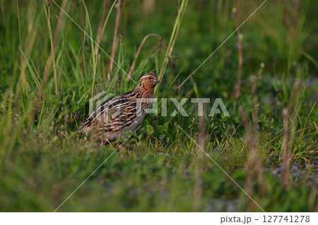 河川敷を徘徊するコリンウズラ