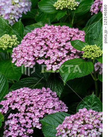 ピンク色のオタフクあじさい(ウズアジサイ)