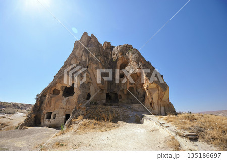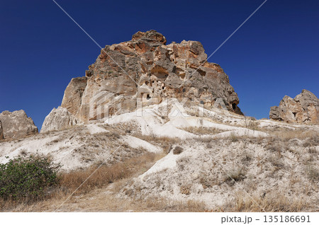 rock formations located near the city of Uchisar in Cappadocia, Turkey