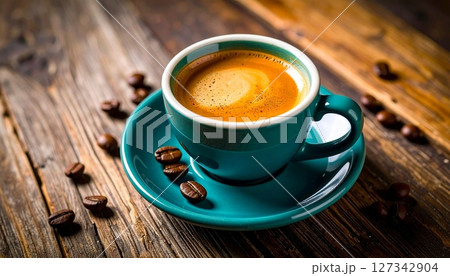 Espresso shot with crema in a coffee shop-style ceramic cup.