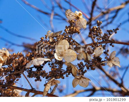 茶色に枯れたノリウツギの実