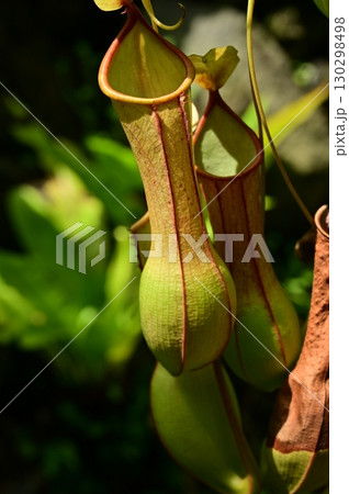 日中の植物園で咲く食虫植物のウツボカズラ