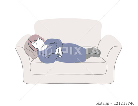 ソファで横になる女性のイラスト素材
