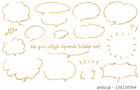 手描きインクペン風のゆらぎゴールドが輝くテクスチャ感のある吹き出しと装飾アイコンのセット
