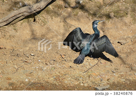 日光浴をする「ウミウ」(谷津池/埼玉県大里郡寄居町)