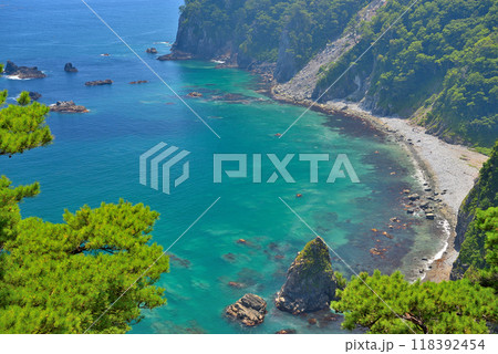 東北・鵜ノ巣断崖・断崖に突き出た位置にある南側の展望台から御殿崎を望む・岩手県田野畑村(2)