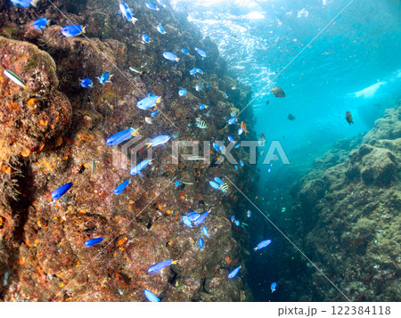 ドロップオフのキンギョハナダイ、キホシスズメダイ、ソラスズメダイ他の群れ 賀茂郡南伊豆町中木ヒリゾ浜